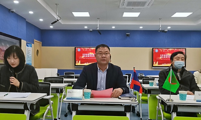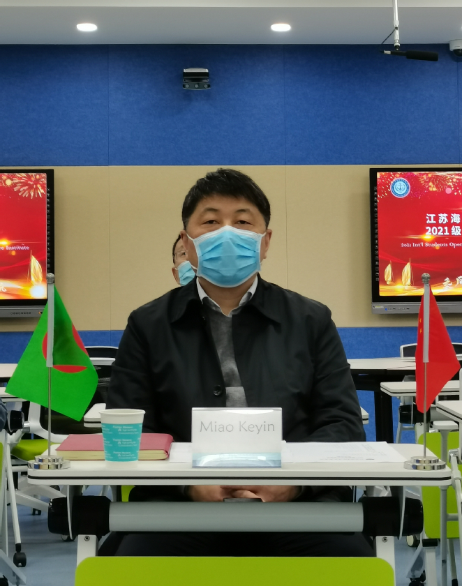 开学典礼上,缪克银校长代表学校向远在境外的留学生们表示欢迎,并向同学们介绍了南京和海院的概况。他指出,在当前全球疫情大背景下,同学们克服困难、坚持学习的精神令人感动,并希望学生们在今后的学习生活中,继续刻苦拼搏,认真学习汉语,深入了解中国历史文化,早日成长为跨文化交流的使者,同时,还应注重加强品格修养,建立“兼济天下”的胸怀,真正成为“人类命运共同体”的积极建设者和推动者。