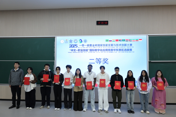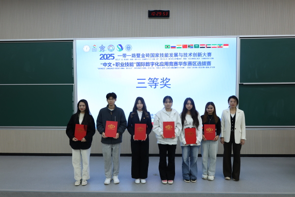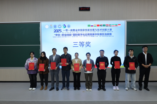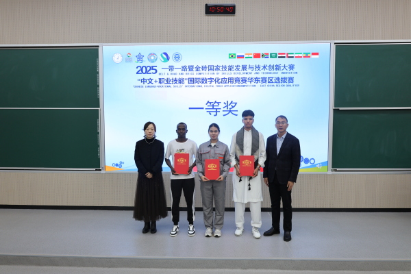 11月1日,在“2025年一带一路暨金砖国家技能发展与技术创新大赛——‘中文+职业技能’国际数字化应用竞赛(华东赛区)”中,国际教育学院参赛师生凭借扎实的专业功底和出色的现场表现,取得优异成绩。