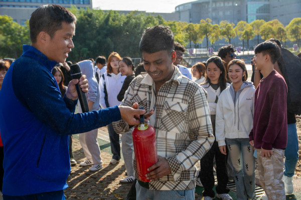 演练结束后,来自哈萨克斯坦的2025级新生夏哲分享了他的感受:“这是我第一次在中国参加如此正式的消防演练,非常震撼也很有意义。我感受到了学校对我们留学生安全的高度负责,这让我在中国的学习和生活更加安心。”