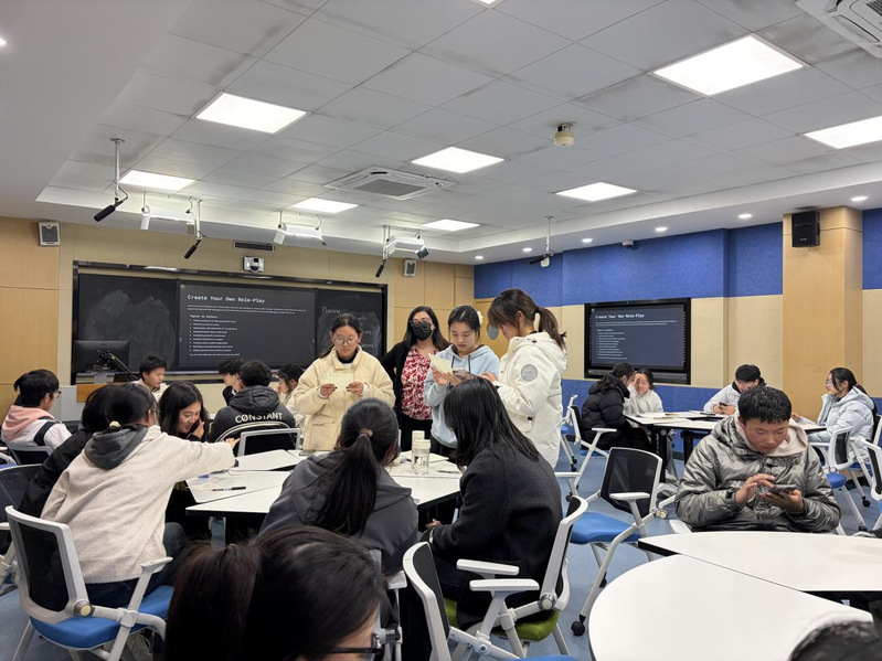 外教结合丰富的跨年龄段教学经验,围绕两大核心模块开展活动。在角色扮演环节,外教讲解了角色扮演的定义与提升口语自信、适配社交场景的核心作用,并以餐厅点餐、求职面试、校园偶遇国际学生等实用场景为例,引导参与者分组实操演练,还鼓励大家自主拟定假期计划、生日派对筹备等主题创作对话。