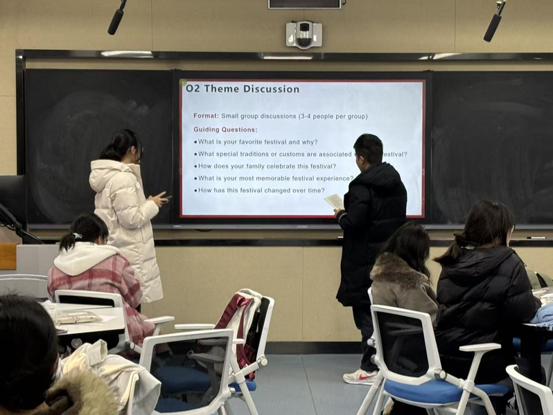 活动准备了若干与节日习俗相关的卡片。参与者依次进行表演,其余人员用英文猜测相应节日。围绕节日这一主题,同学们用英语分享了个人最喜爱的节日及其理由,并探讨了节日的庆祝方式等。