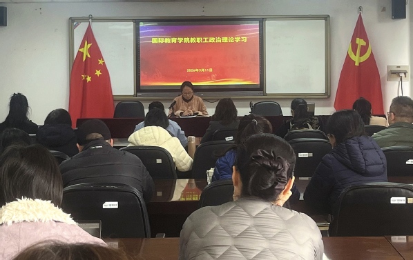 3月11日下午,国际教育学院在海涵楼1117多功能厅召开2026年第1次教职工政治理论学习会。学院全体教职工参会,会议由学院党总支书记沈云主持。