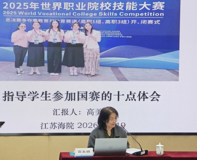高职研究会秘书长、学院副院长张圆圆主持了专题环节。东南大学胡永辉教授围绕口语技能大赛赛题展开专业辨析,深入剖析赛题设计思路与考查重点;南通职业大学国际合作教育学院院长陈蓓以世界职业院校技能大赛为切入点,分享了“以赛为镜”的教学反思与师生成长路径;高等教育出版社外语出版事业部吴爽老师从教学资源服务角度,探讨了“以赛促教、鉴往知来”的备赛与育人融合模式;我校2025年世界职业院校技能大赛金牌指导老师高美娟结合去年的指导参赛经历,作了“匠心备赛,笃行致远”经验分享,为各院校备赛提供了实操性指导。各专题分享内容充实、针对性强,引发参会人员广泛共鸣与深入思考。