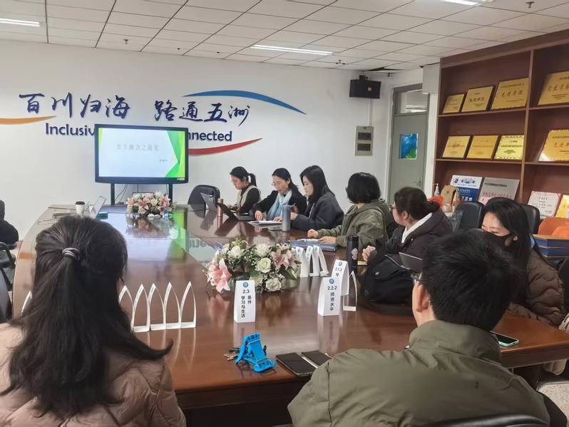 2026年3月18日下午,基础英语课程中心在1118会议室举行“基专融合”教学研讨活动。张建玲、郭菁菁两位教师聚焦英语教学与专业融合作教学分享。