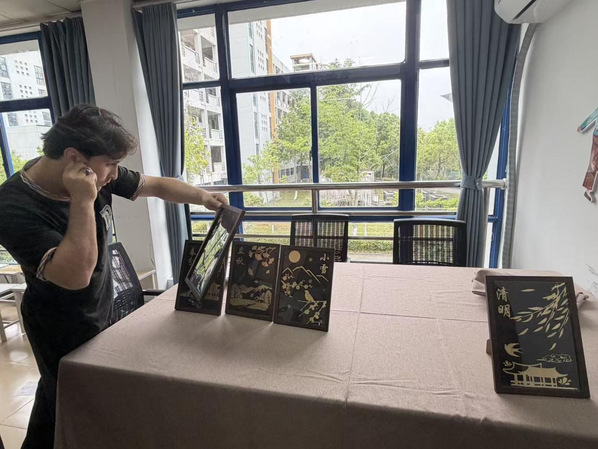 金箔画制作完成后,留学生们充分运用活动中所学的二十四节气知识,亲手为自己的作品排序,将一幅幅承载着节气底蕴与非遗美感的金箔画,精心装饰在留学生一站式社区活动室,让原本温馨的空间更添文化气息,也让每一件作品都成为中外文化交融的生动见证。