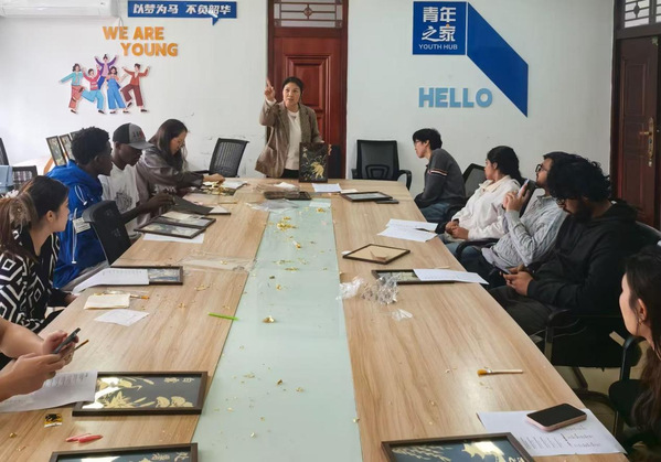 为弘扬中华优秀传统文化,丰富留学生校园文化体验,4月20日“国际中文日”当天,国际教育学院在留学生一站式社区Good Youth空间,成功举办“国际中文日”系列活动之“二十四节气金箔画体验”活动。来自不同国家的24名留学生参与其中,在创作中感受节气智慧与非遗魅力。